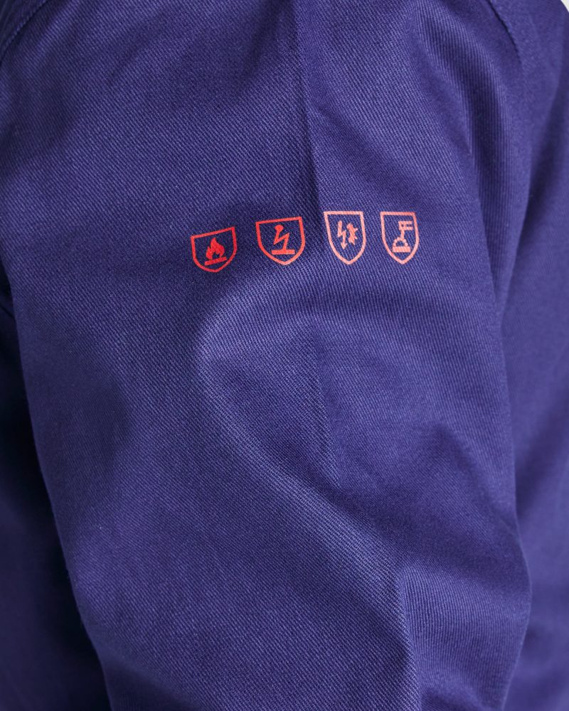 * Protección contra el calor y la llama. * Propiedades electroestáticas. * Protección contra los riesgos térmicos de un arco eléctrico. * Protección durante soldeo y procesos afines. Certificación CE según las normas: EN ISO 13688:2013/A1:2021 EN ISO 11611:2015: CLASE 1: A1 + A2 EN ISO 11612:2015: A1 + A2, B1, C1, E3, F1 EN 1149-5:2018 EN 61482-2:2020: APC =1.