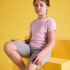 Material: 94% algodón / 6% elastano, punto liso, 270 g/m². Tallas para niñas, 210 g/m². Color gris vigoré 58: 81% algodón / 13% viscosa / 6% elastano.