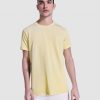 Camiseta man de manga corta en algodón peinado efecto lavado. Cuello redondo en canalé 1×1. Cubrecosturas en cuello del mismo tejido. Costuras dobles en laterales y sisas.