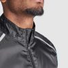 Chaleco cortavientos ultraligero. Cremallera frontal al tono. Protector de barbilla. Espalda en tejido de malla transpirable. Bandas reflectantes en el frontal y en espalda de los hombros como puntos de visibilidad aumentada. Sisas y bajo con ribete elástico al tono. Bolsillo lateral izquierdo para plegado.