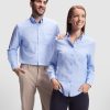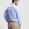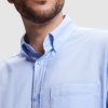 Camisa manga larga. · Tejido oxford. · Cuello clásico camisero. · Costura de hombro adelantada. · Canesú espalda. · Bolsillo en pecho izquierdo. · Tapeta con botones al tono. · Puños con abotonadura doble y pinza al lado de la tapeta de puño con un botón más pequeño. · Bajo con forma redondeada.