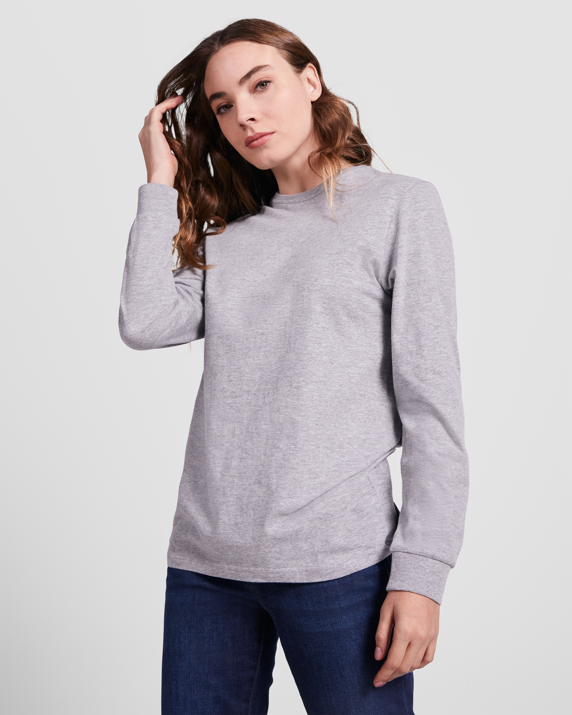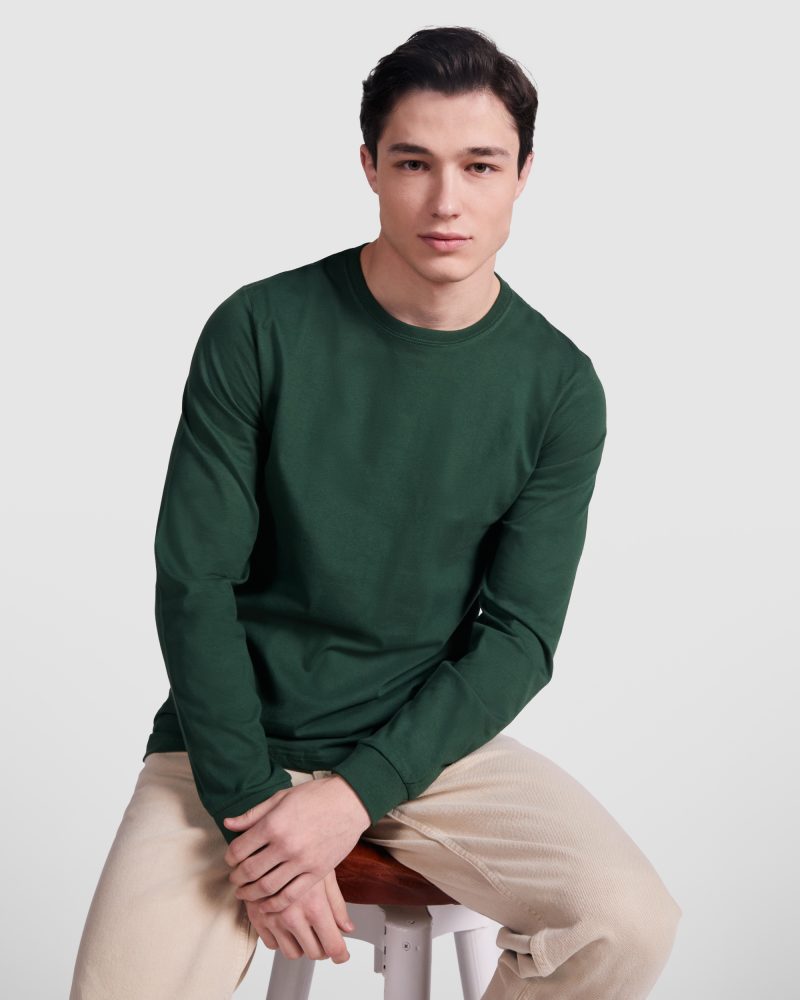 Material: 100% algodón, punto liso, 165 g/m². Color gris vigoré 58: 85% algodón / 15% viscosa.