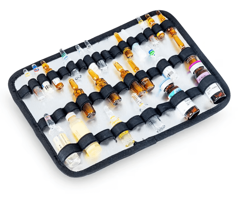 Ampulario de gran capacidad, rojo con material invertido