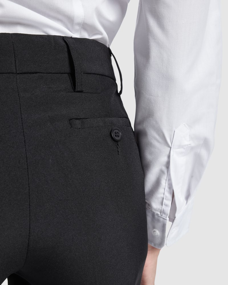 Pantalón de camarera. · Pinzas delanteras y traseras. · Bolsillos frontales a la cadera y porta monedero. · Bolsillo trasero en el lado derecho.